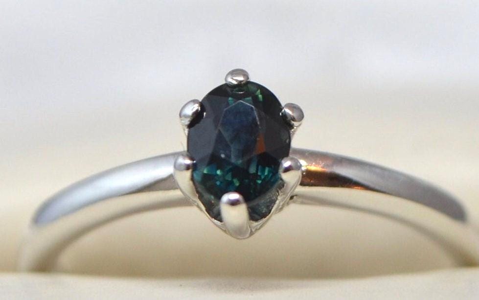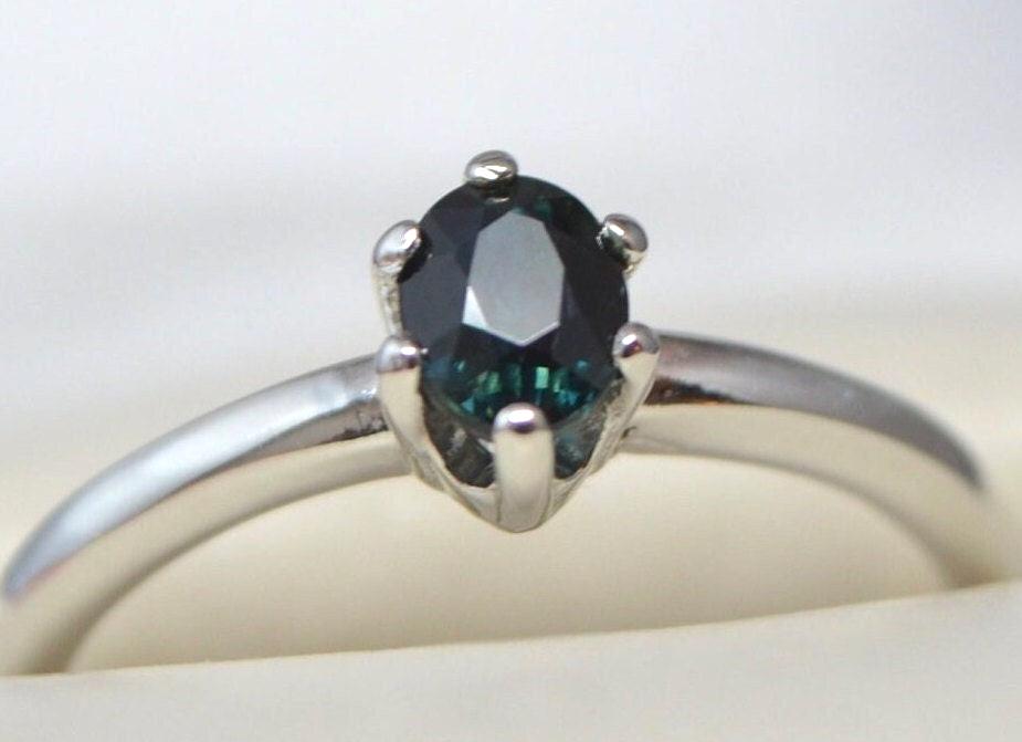 Immerse yourself in the captivating beauty of this 0.66 carat blue-green teal sapphire ring—a gem that balances elegance and individuality with effortless grace. Its enchanting hue shifts with the light, revealing a mesmerizing dance between oceanic blues and forest greens, a true testament to nature’s artistry. Expertly cut in a classic oval shape, the sapphire draws the eye with subtle brilliance and refined charm.