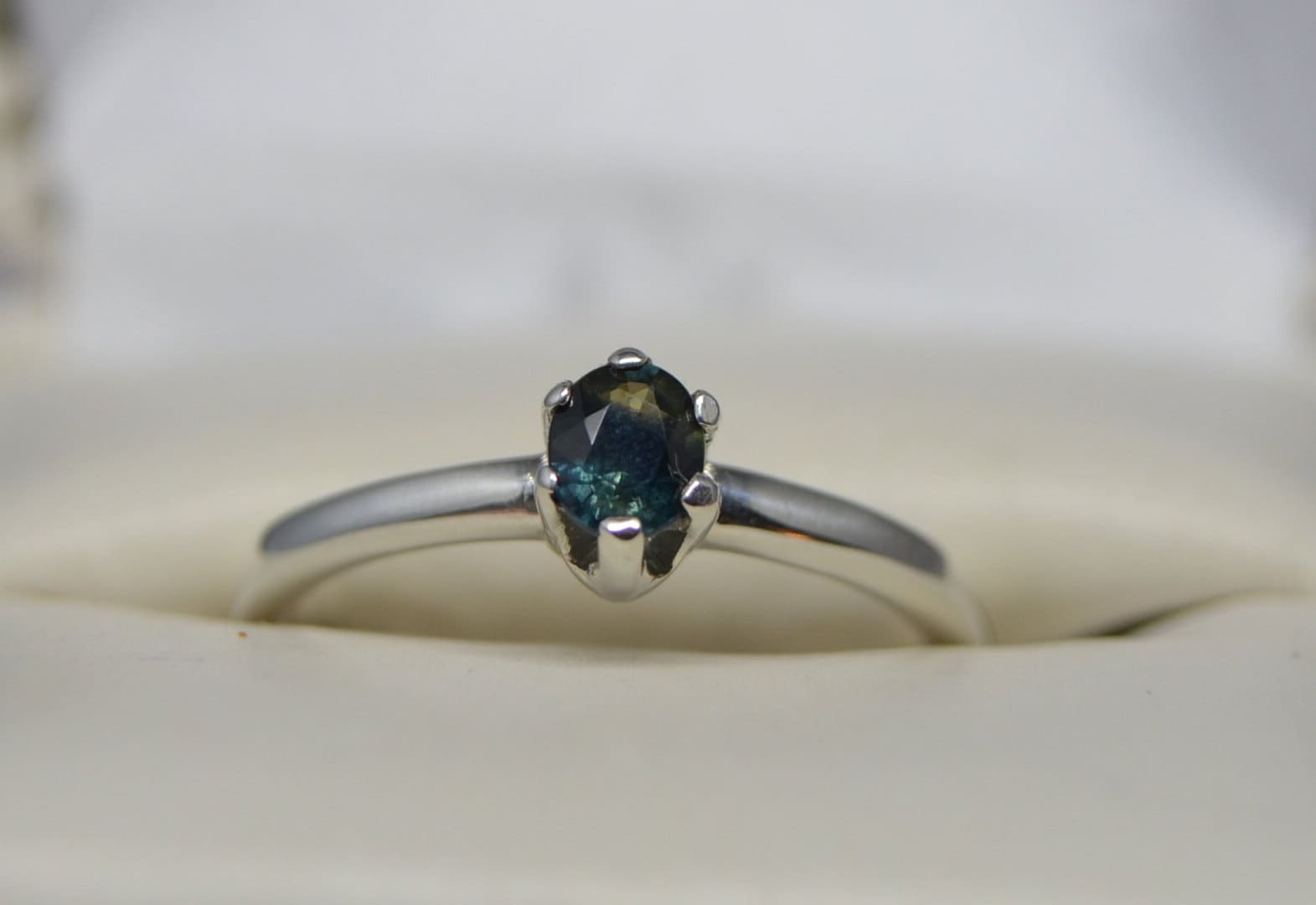 This is a nice Blue with green teal Genuine Untreated Montana Sapphire set in Sterling Silver.
