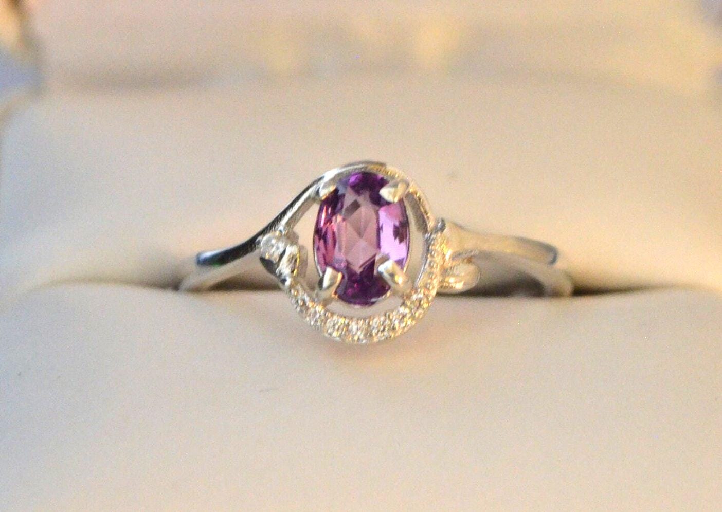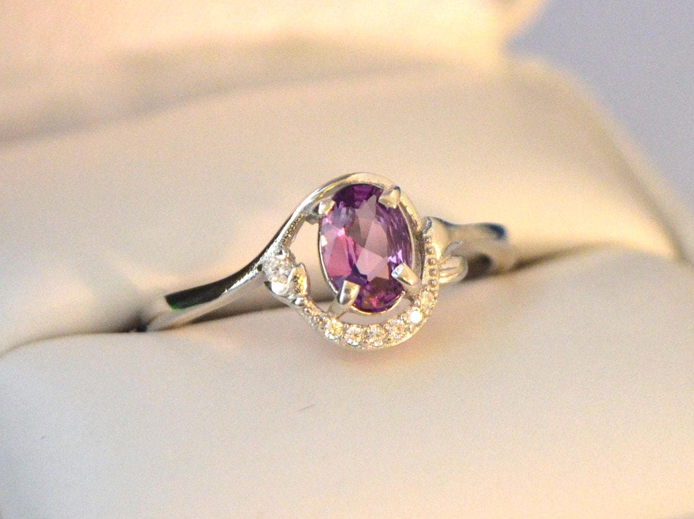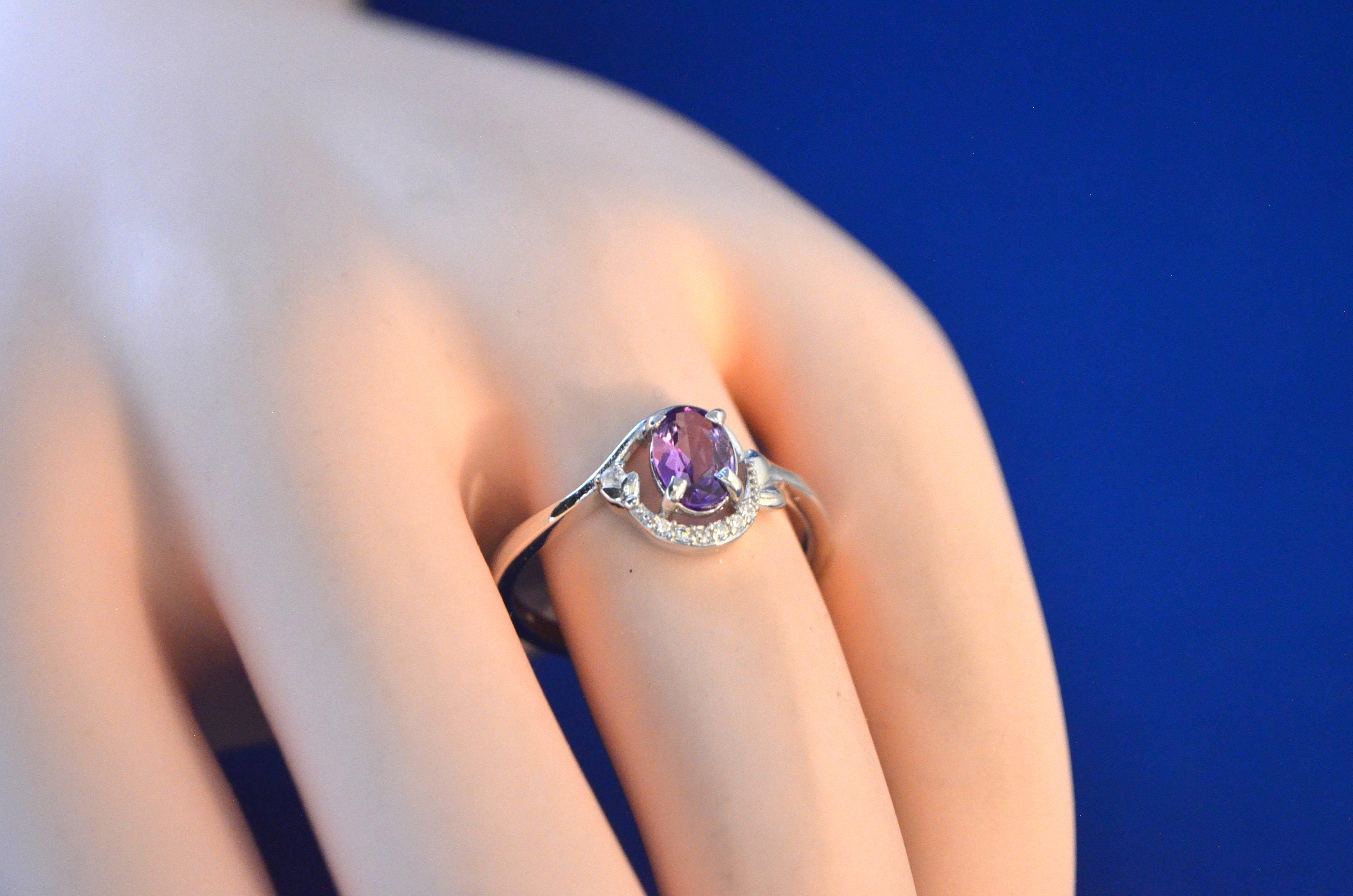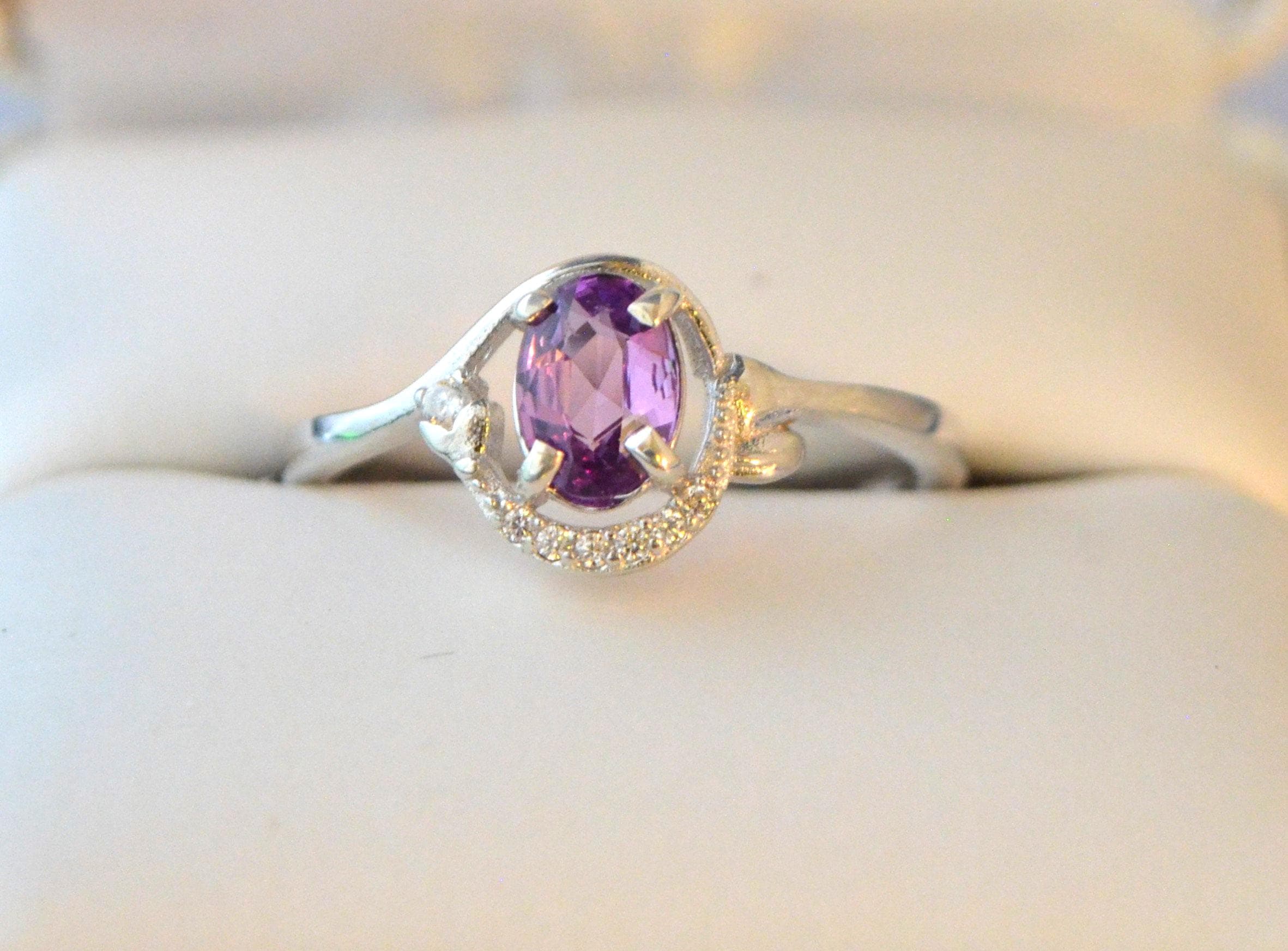 Embodying elegance and individuality, this sterling silver ring features a striking 0.60 carat oval cut Intense Purple Sapphire with exceptional VVS clarity. Ethically earth mined in Tanzania, the sapphire’s vivid color and refined transparency create a captivating focal point. Clear cubic zirconia accent stones flank the centerpiece, adding a touch of brilliance that complements the gemstone’s rich depth. Thoughtfully designed and responsibly sourced, this ring is a sophisticated expression of style with a meaningful origin.