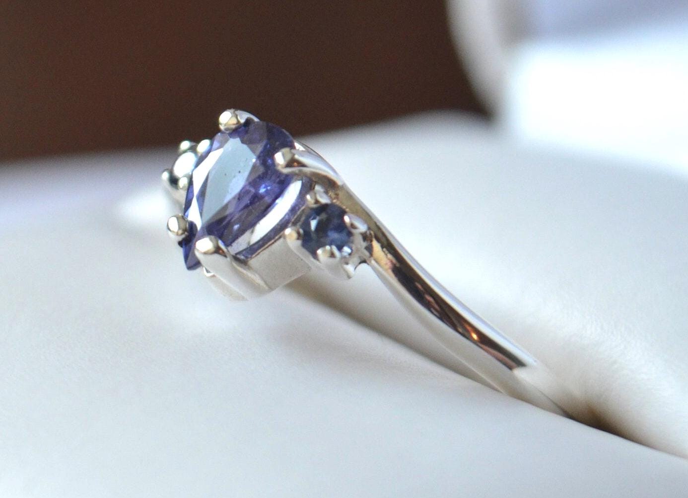 * Color: Intense Purple with two blue sapphire accent stones