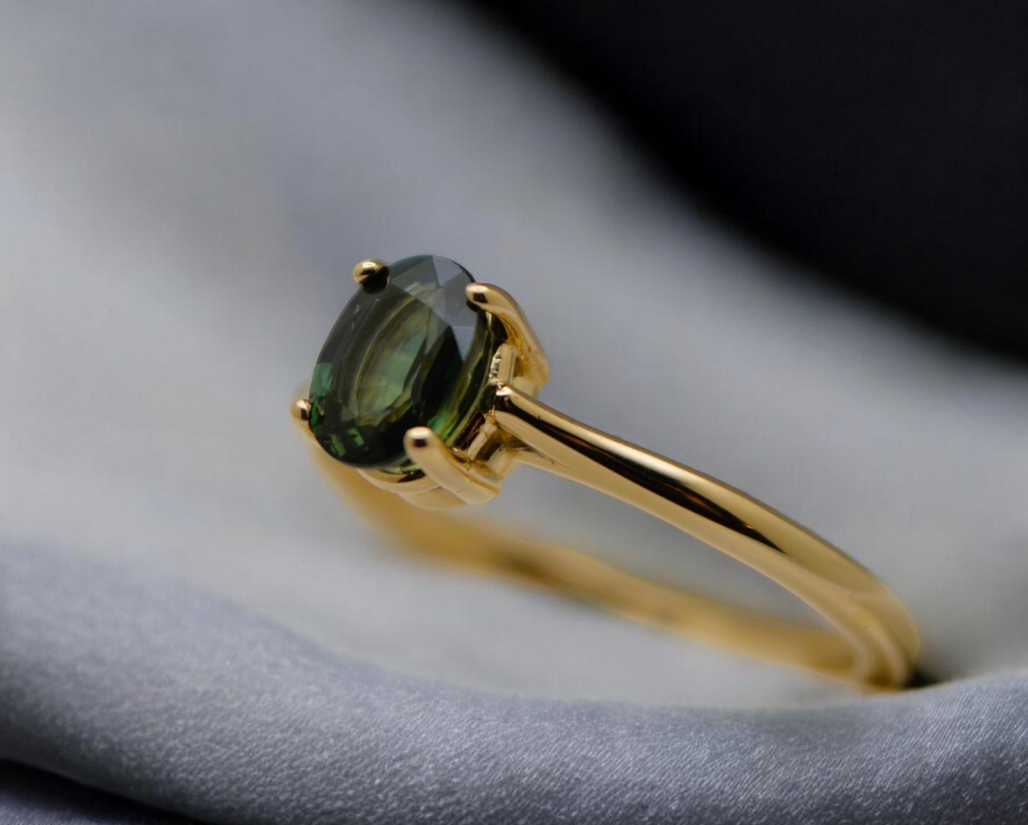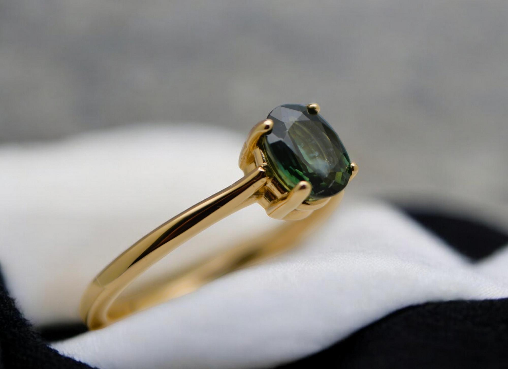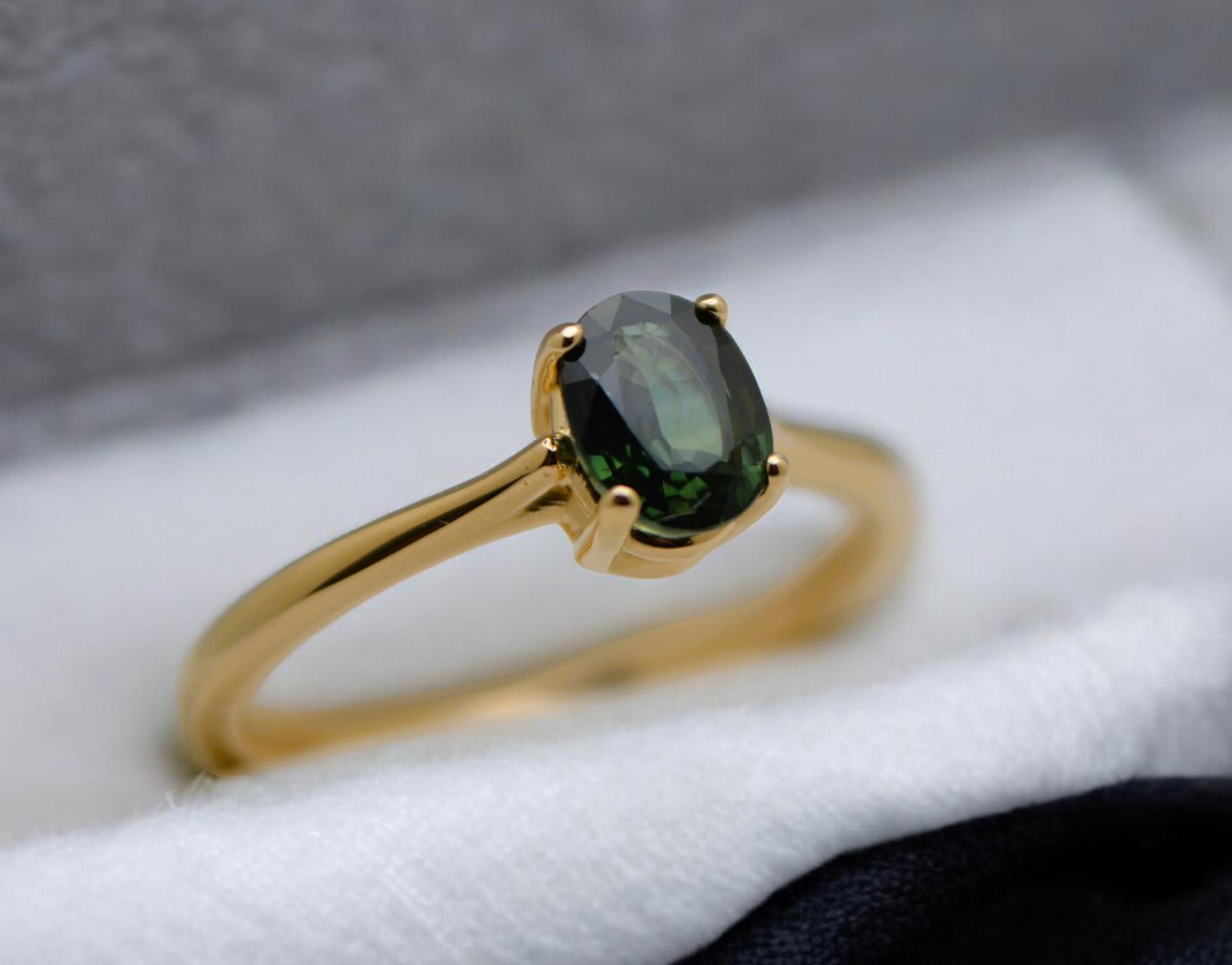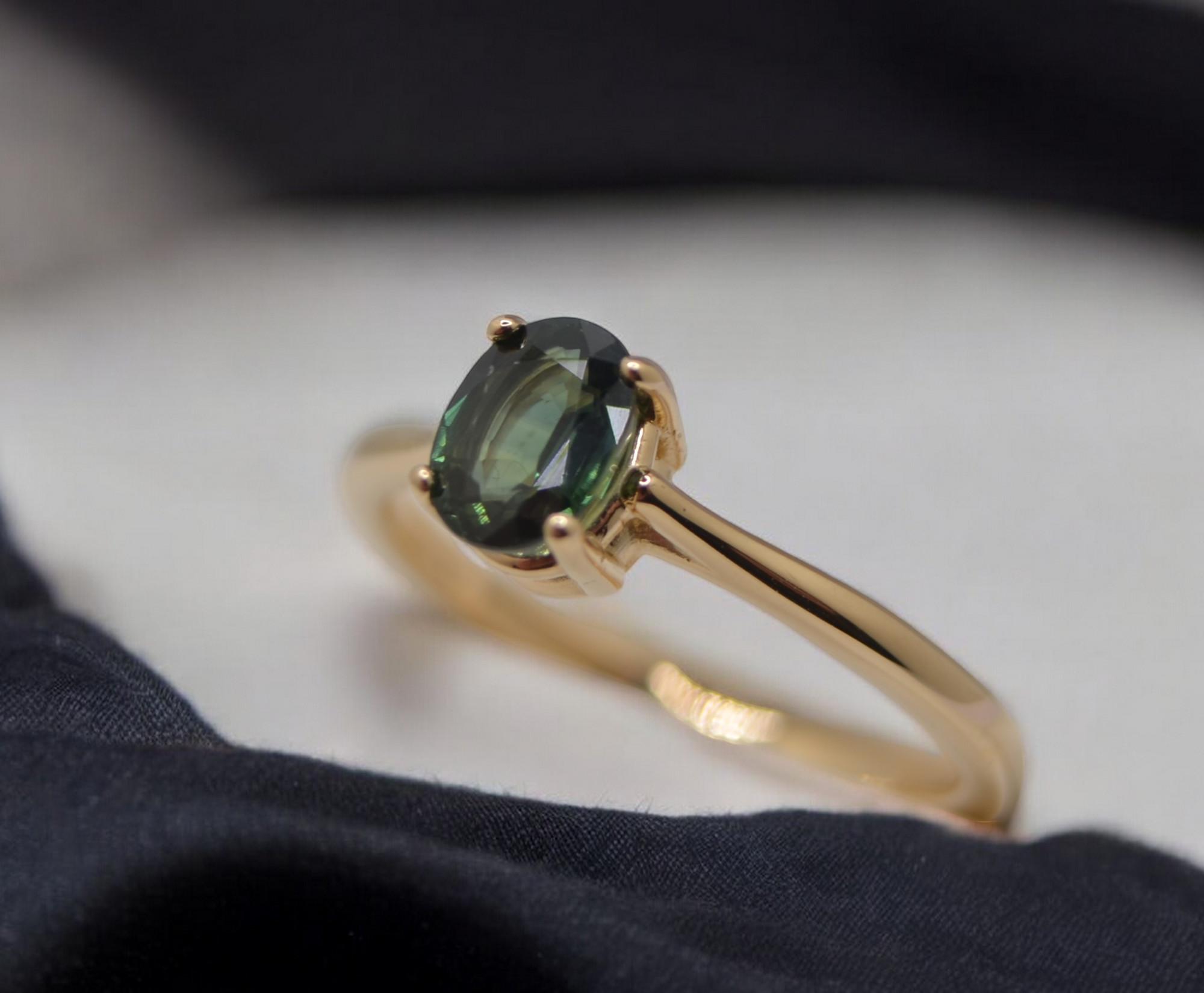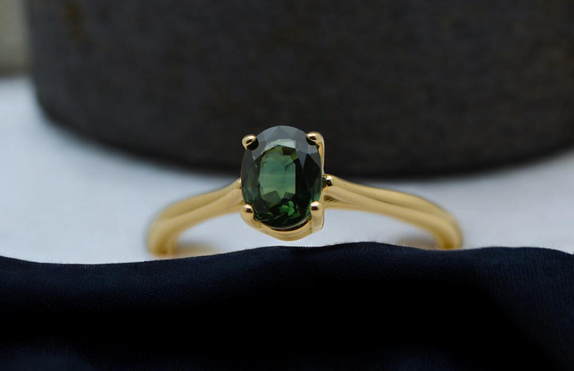 Discover natural elegance with this 1-carat untreated teal green-blue sapphire, ethically mined from the rugged landscapes of Australia. Set in timeless 14K gold, the gem’s unique blend of oceanic hues—untouched and unenhanced—offers a rare glimpse of Earth’s raw beauty. Perfect for those who seek authenticity and bold individuality, this sapphire is a one-of-a-kind statement of style, strength, and natural grace. Rare find for an untreated sapphire at 1 carat.