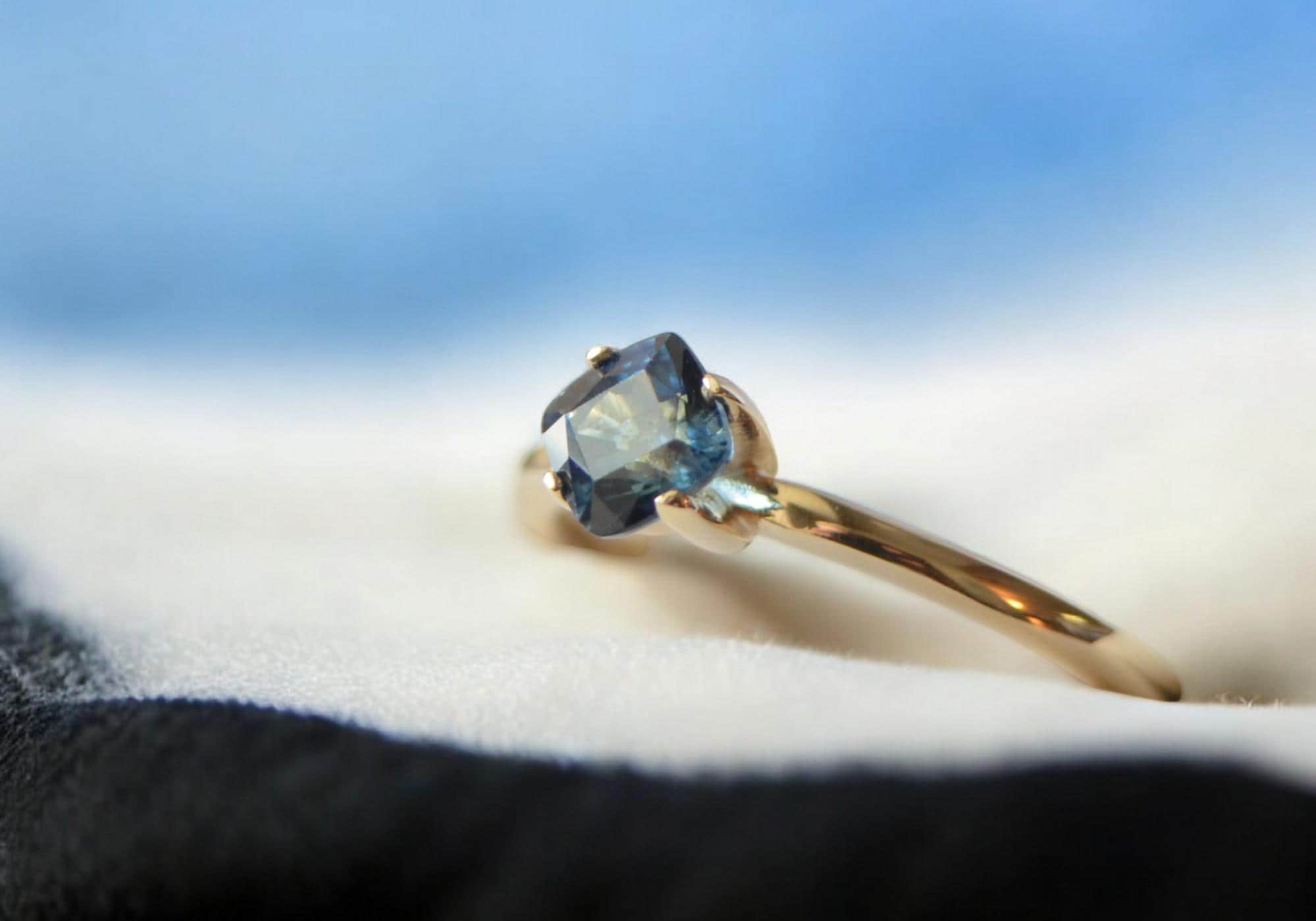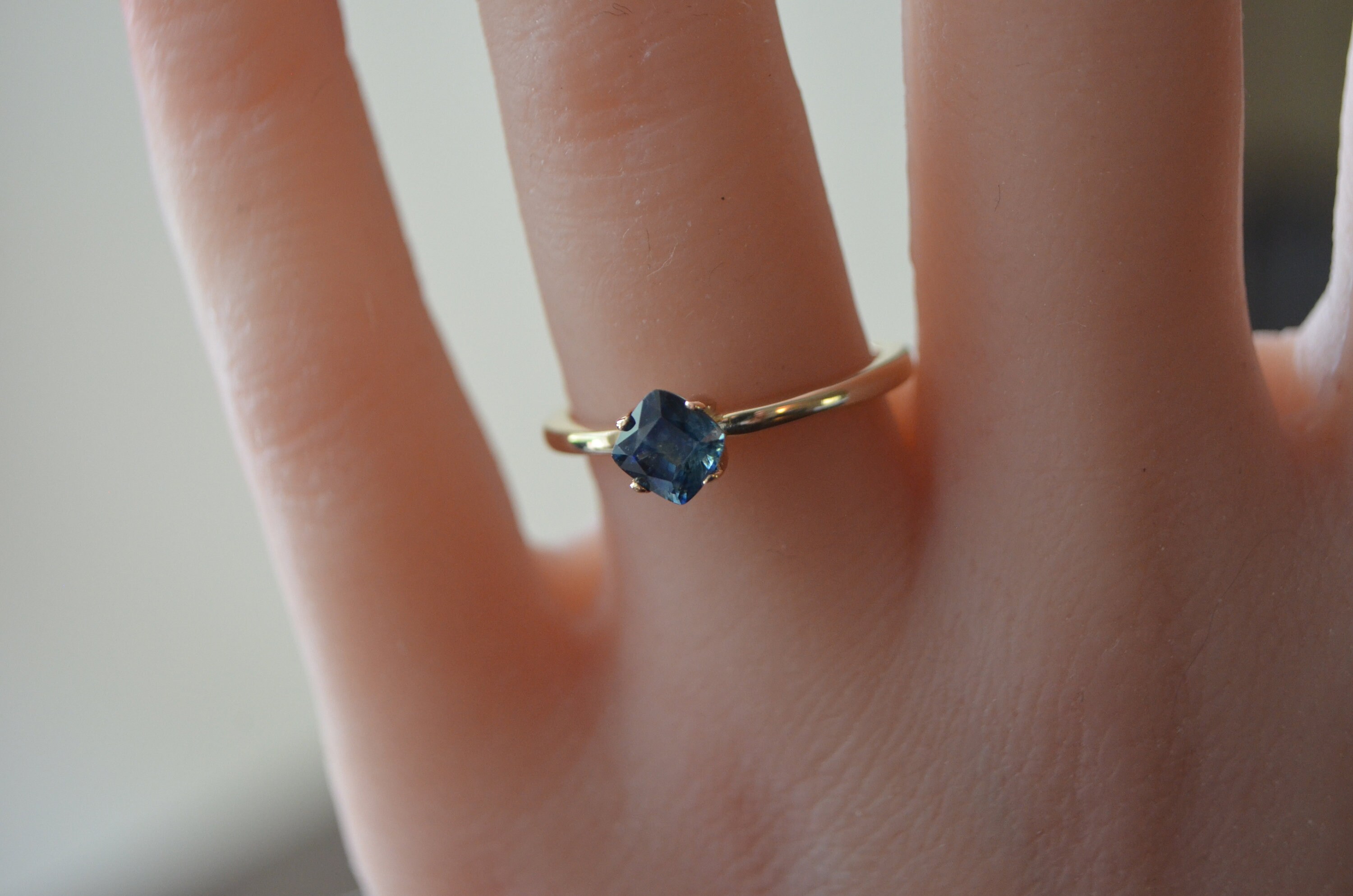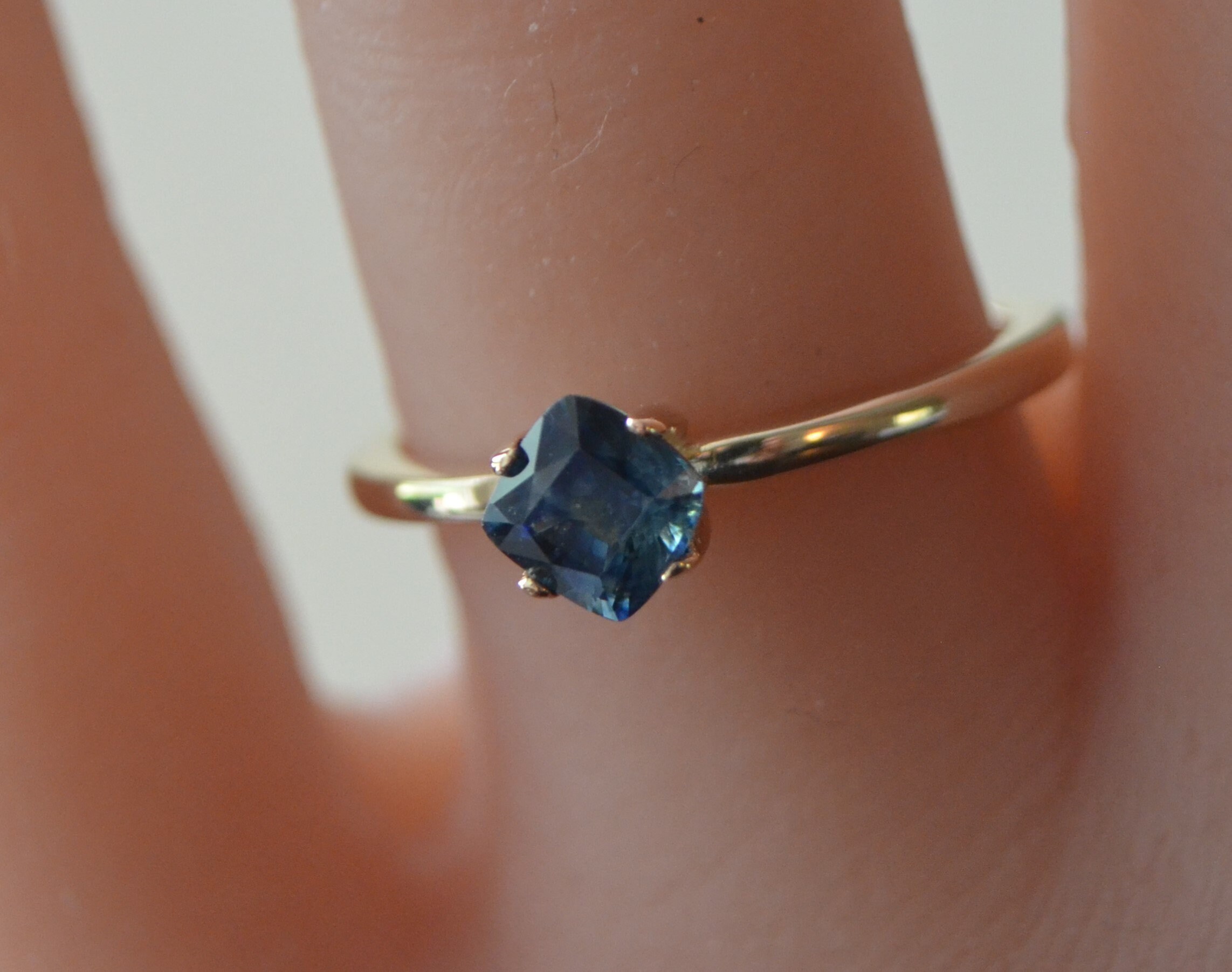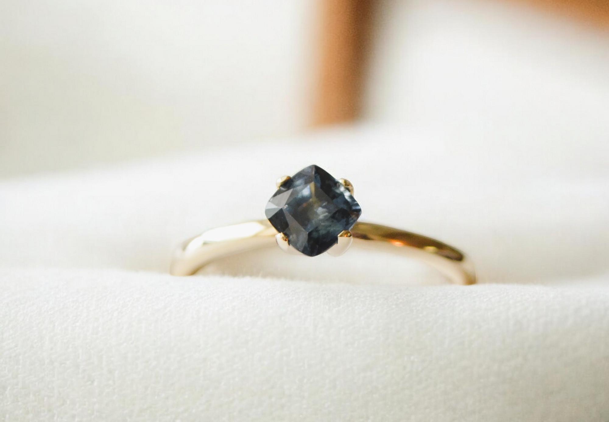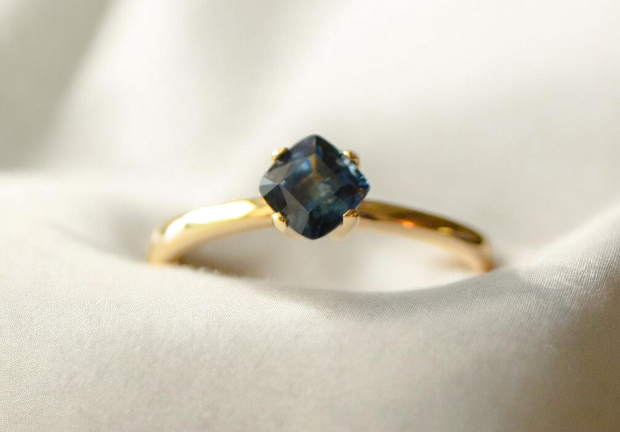 Bold and captivating, this 0.89 ct deep blue sapphire—mined from the rich earth of Madagascar—radiates timeless elegance. Expertly cushion-cut and set in solid 10K gold, its intense hue and natural origin make it a striking yet sophisticated piece. Perfect for those who appreciate classic beauty with an edge, this gem is a small treasure with a powerful presence.