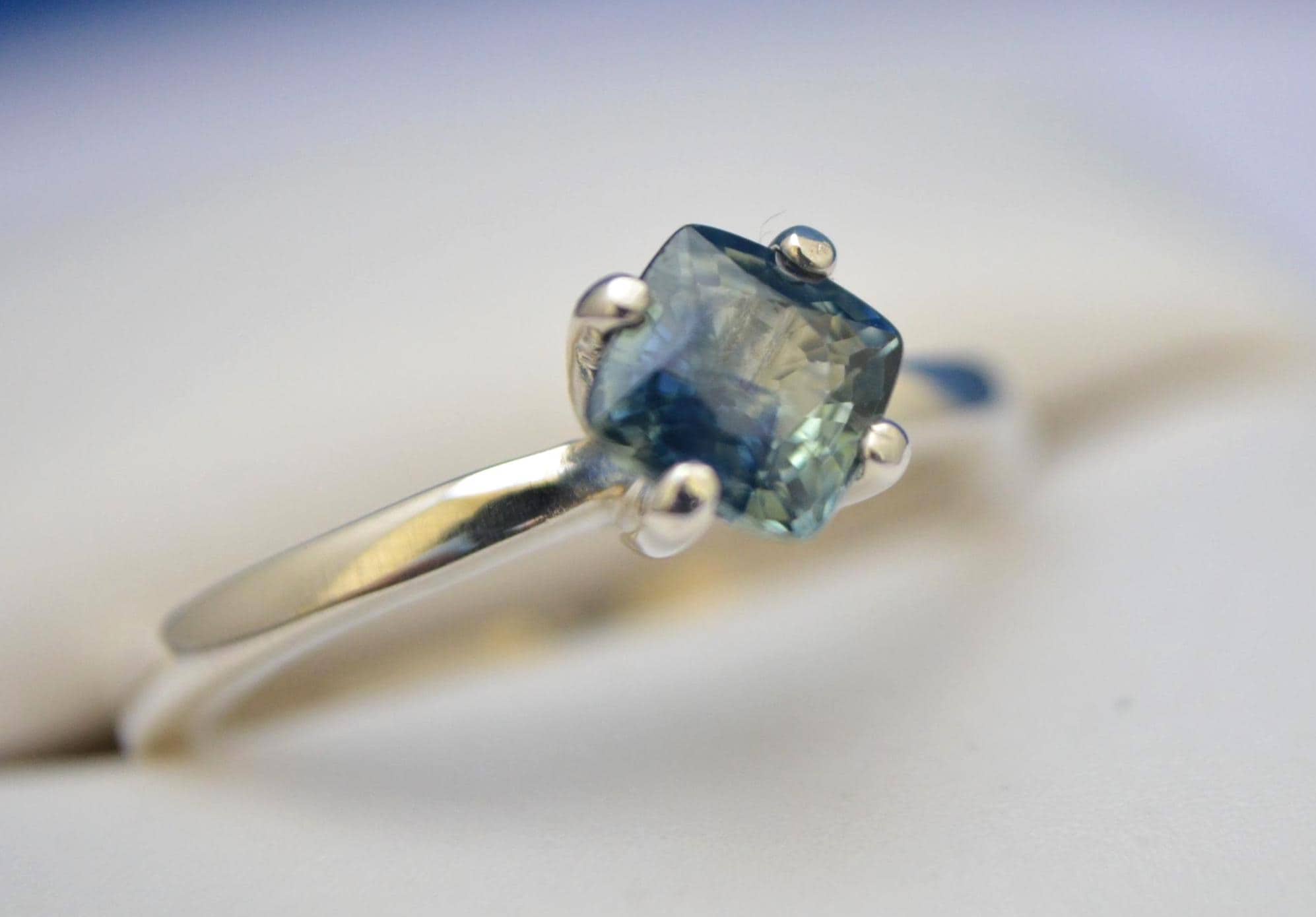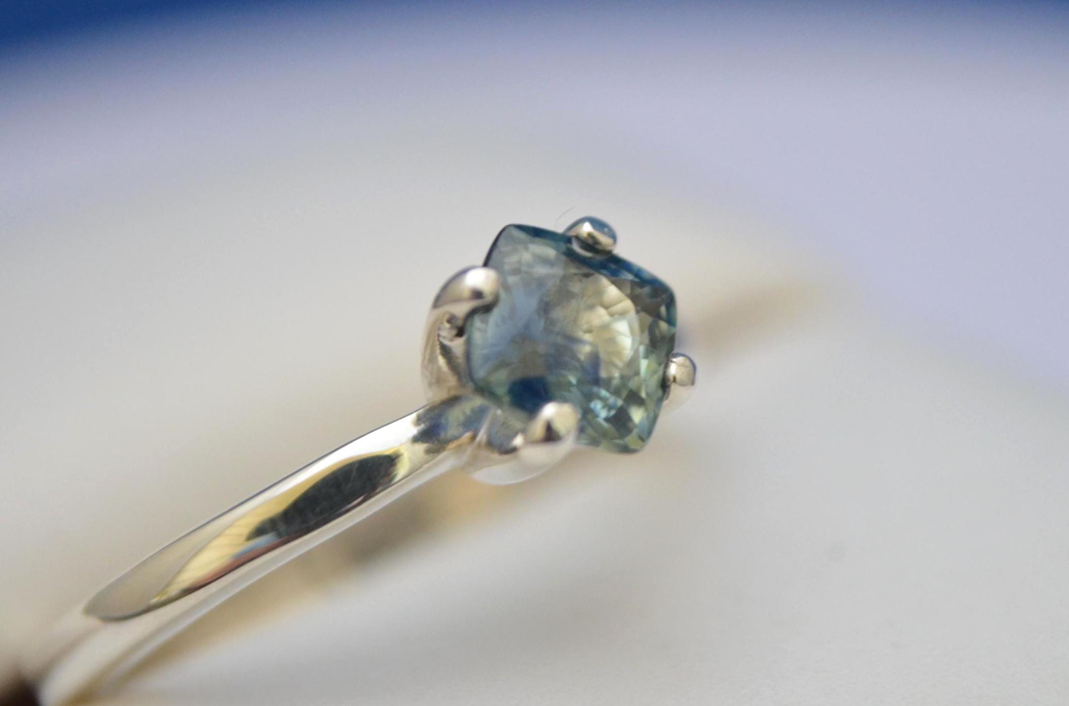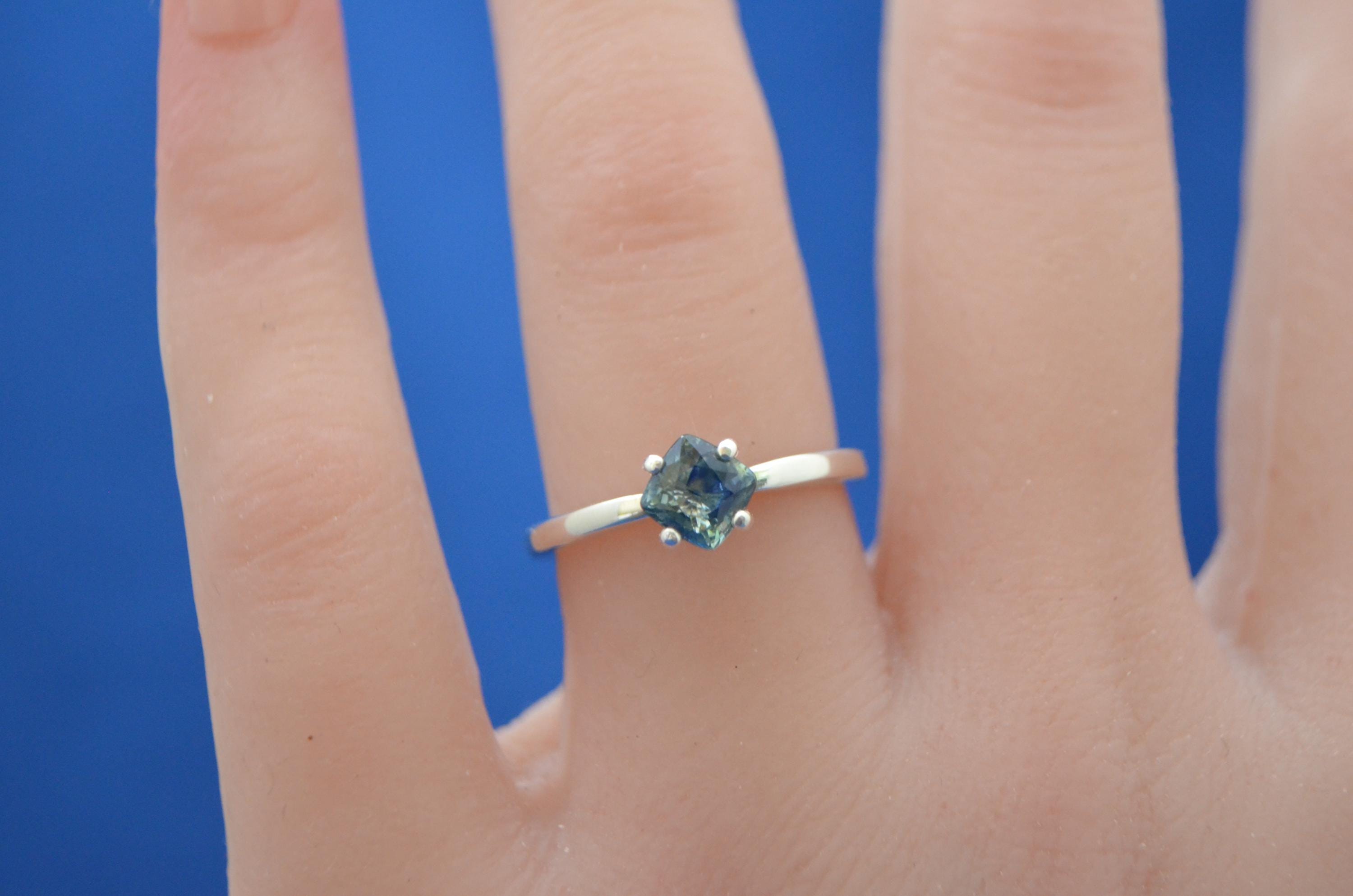 Celebrate color and individuality with this captivating 0.88 carat multicolor sapphire ring. Ethically earth-mined in Madagascar, the genuine sapphire displays a mesmerizing blend of natural hues—each facet revealing a different shade, making every stone truly one of a kind. Expertly cushion-cut to enhance its brilliance and depth, the sapphire features VS clarity for exceptional transparency and minimal inclusions. Set in a timeless sterling silver classic V-setting, this ring effortlessly combines elegance with a modern edge. Whether as a personal treasure or a meaningful gift, it’s a radiant expression of craftsmanship, color, and conscious sourcing.