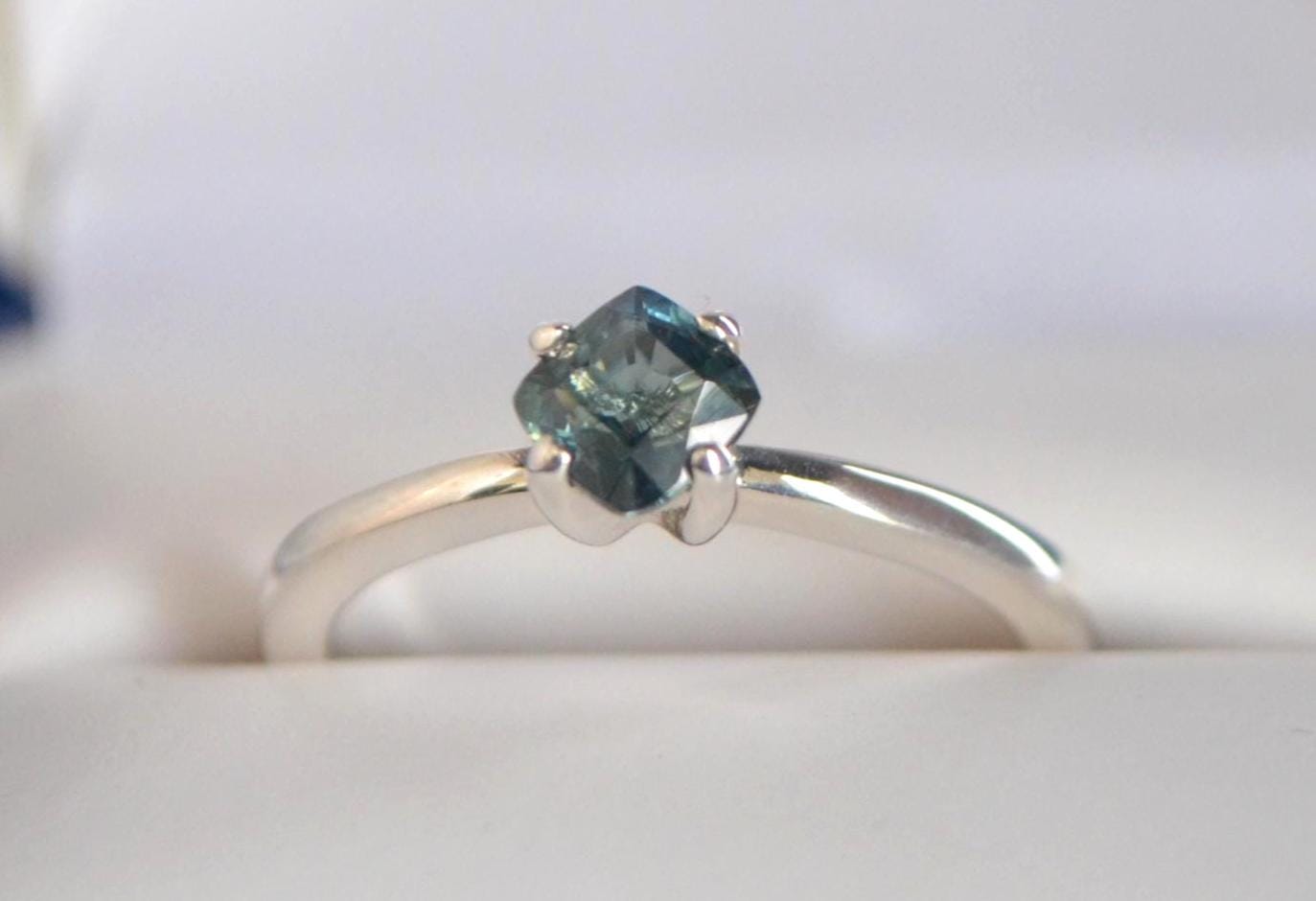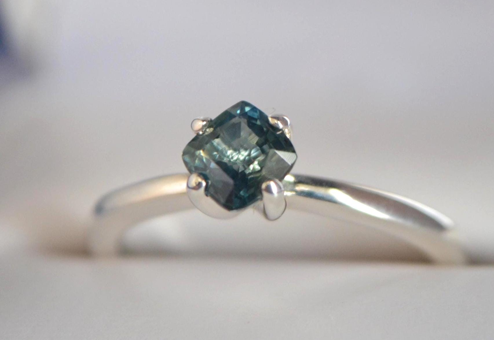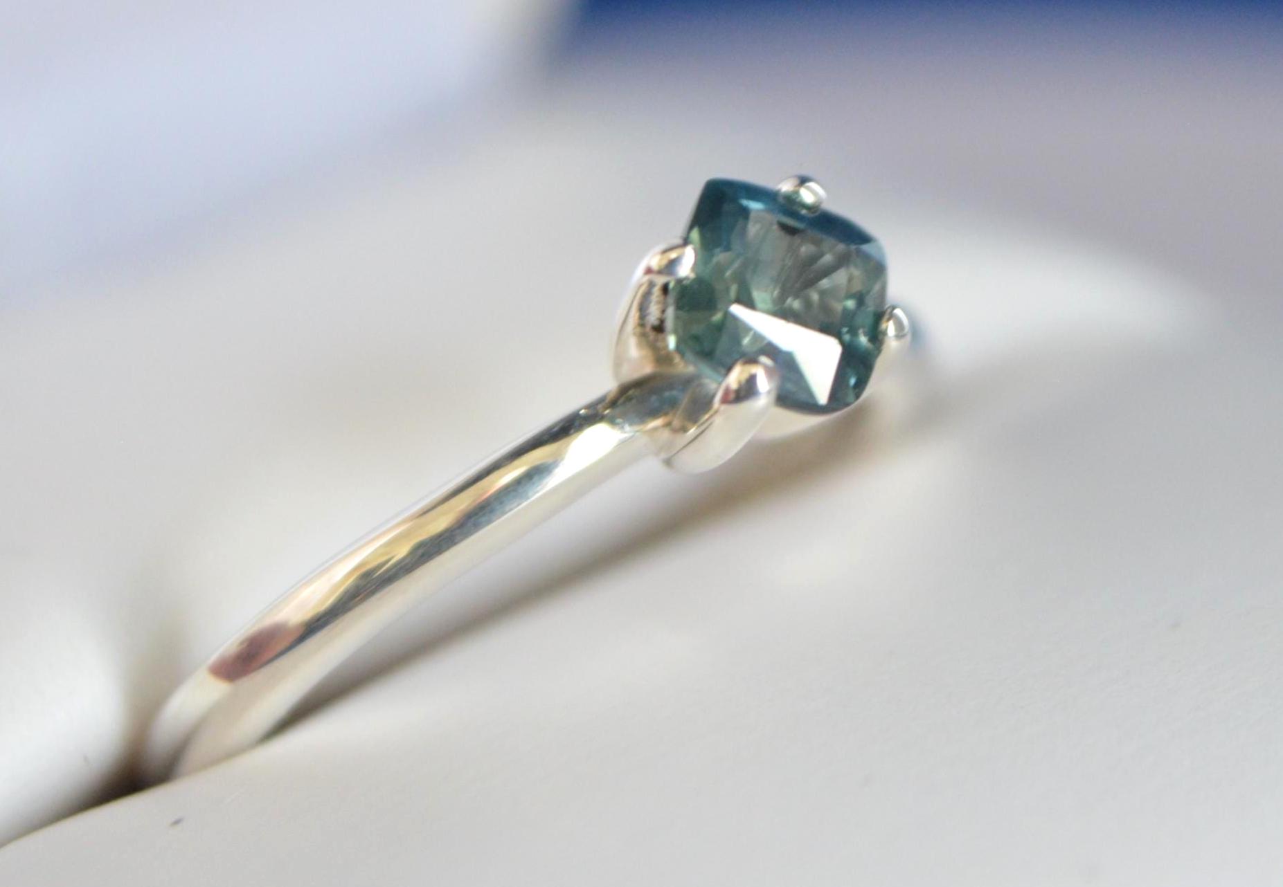 This elegant ring features a genuine multicolor sapphire in a timeless cushion cut, set in a sleek deep vee setting that creates a refined, modern silhouette. The sapphire is natural and earth-mined, weighing 0.74 carats with VVS–VS clarity and displaying beautiful medium blue-green tones that shift subtly with the light. Crafted in solid sterling silver with a polished finish, this ring is a striking choice for an engagement, anniversary, or one-of-a-kind fine jewelry piece. You will receive the exact ring shown.