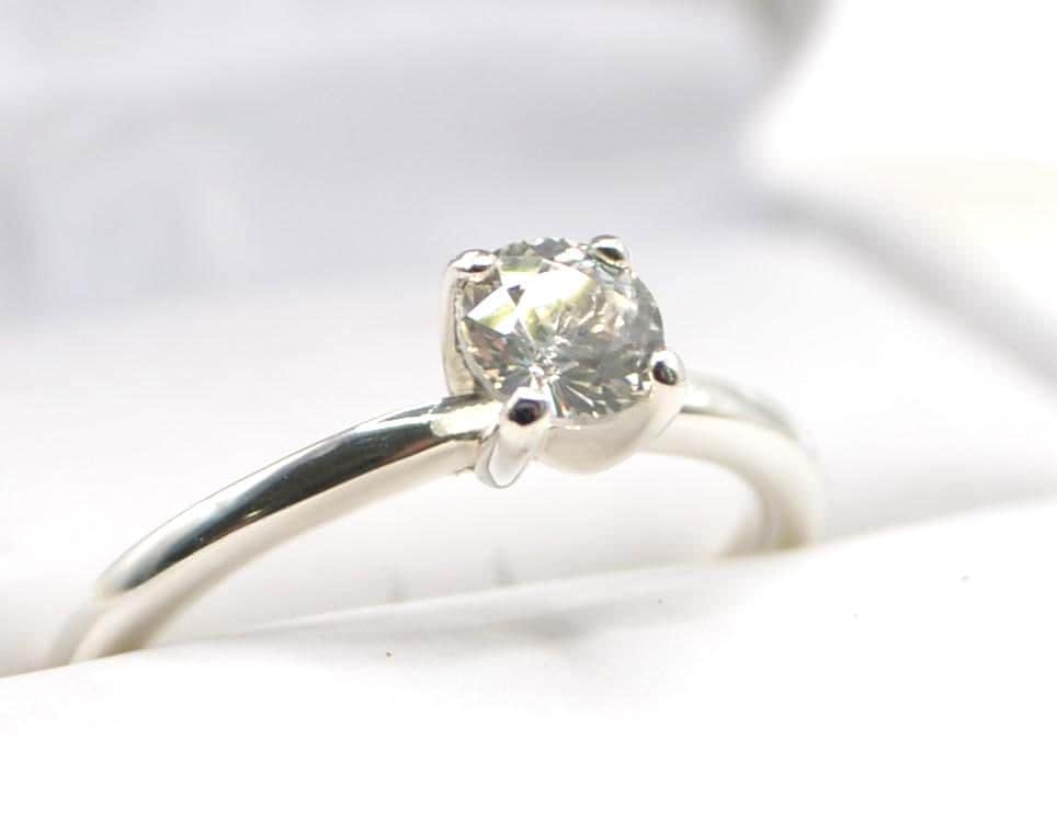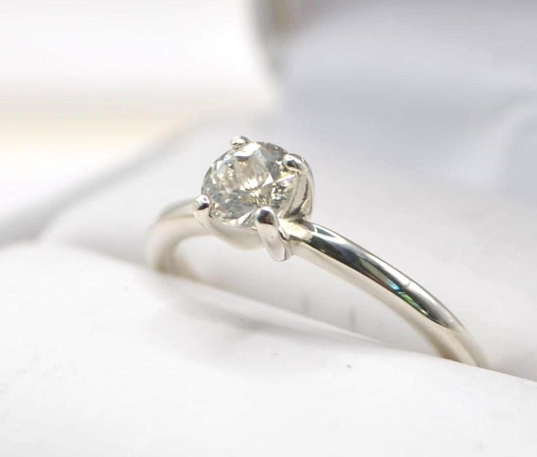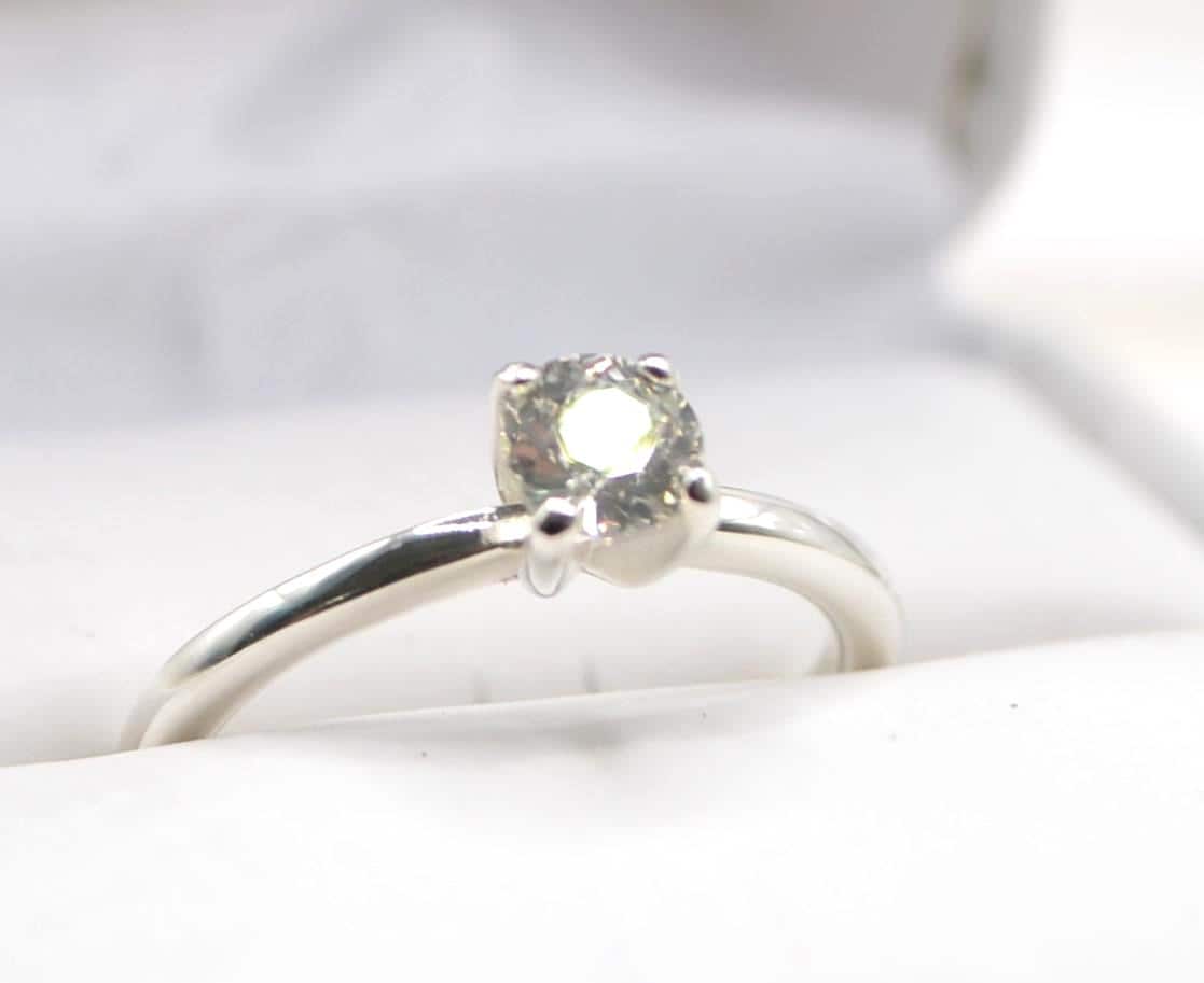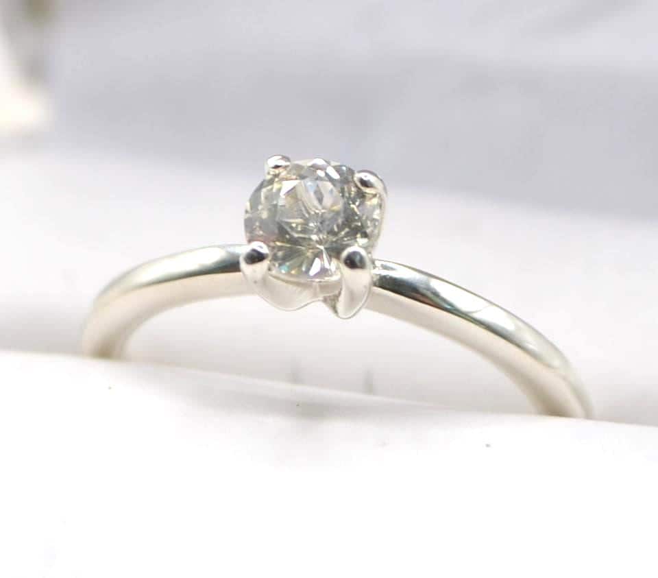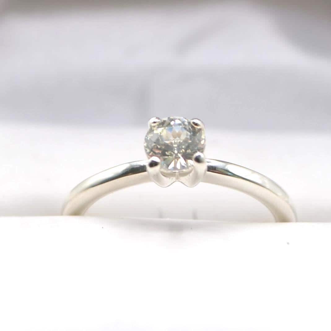 This beautiful ring features a 5mm round white sapphire, weighing about 0.63 carats, set in solid sterling silver. The sapphire is naturally earth-mined from Madagascar and has VVS–VS clarity, meaning it appears very clean to the eye with only tiny, hard-to-see inclusions. (One Image shown in Gold is another option on the drop down menu.)