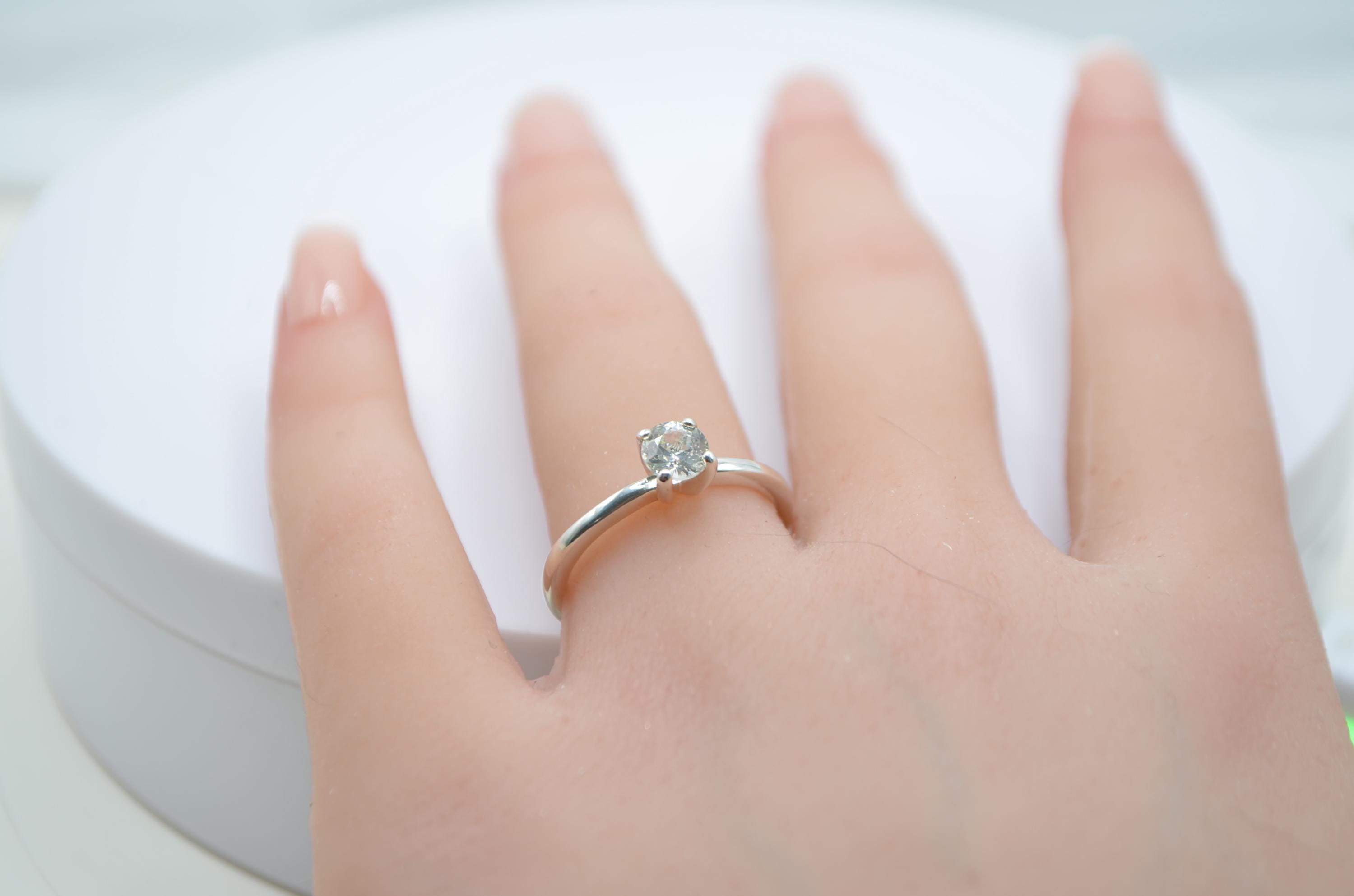 The stone is cut to catch the light nicely, giving it a soft, elegant sparkle. Its clear, neutral color pairs perfectly with the cool shine of sterling silver, creating a simple and timeless look.